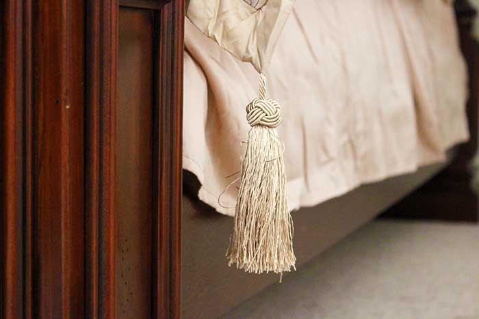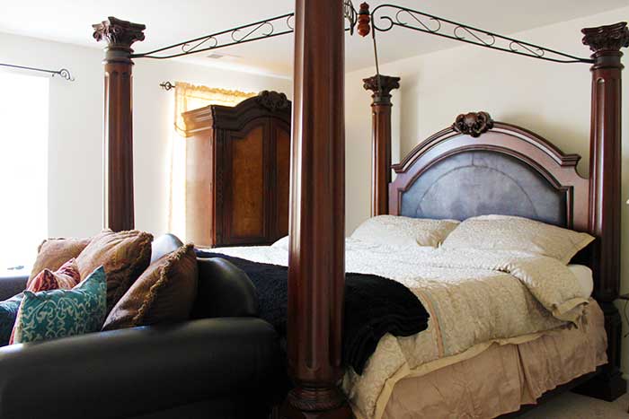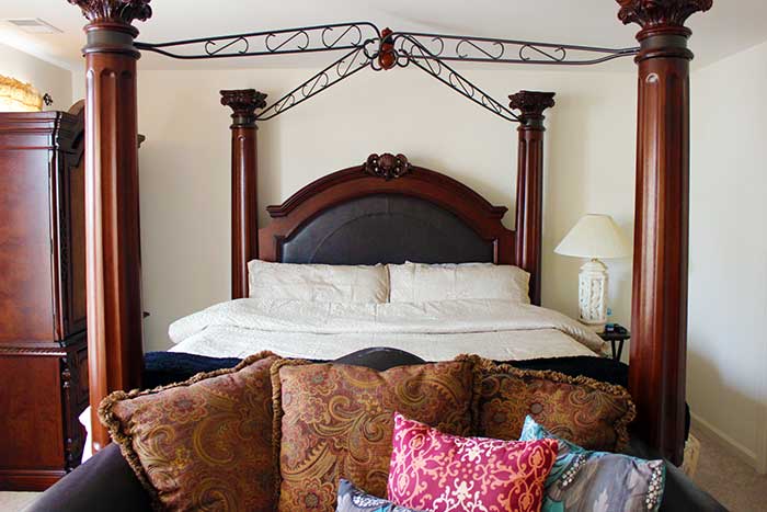 With our home slowly coming together (and still with a lot of mess all over the place), I needed a place to escape to … our beautiful master bedroom. The bedroom set (dresser, armoire, drawer chest, bed frame with pillars) was purchased in Italy and the best way to add that luxurious look and sumptuously rich feel to our room is with Maple Harbour Perselle 4-Piece Comforter Set.