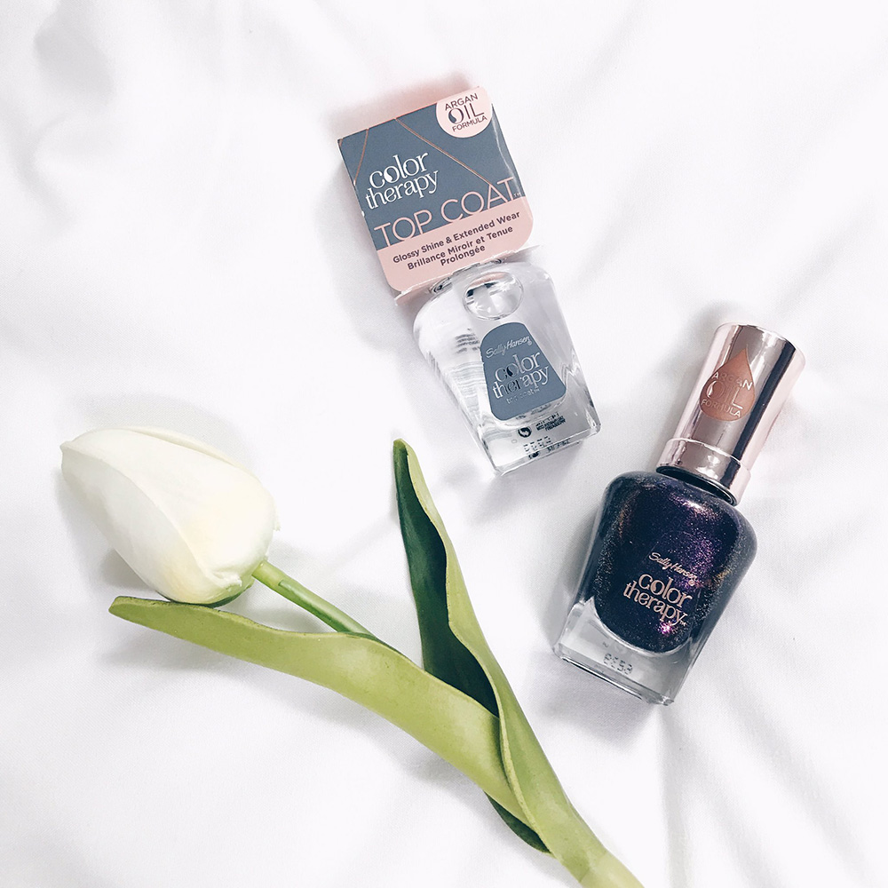 1. Sally Hansen Color Therapy » no base coat needed, just apply two coats of color and a top coat!